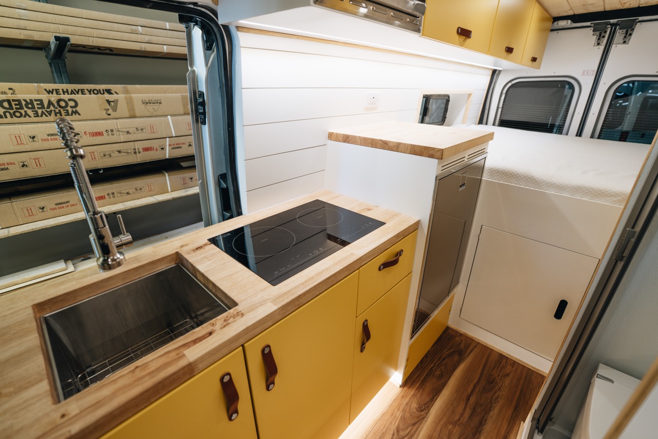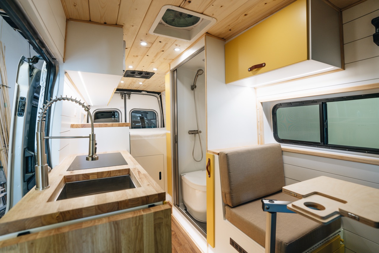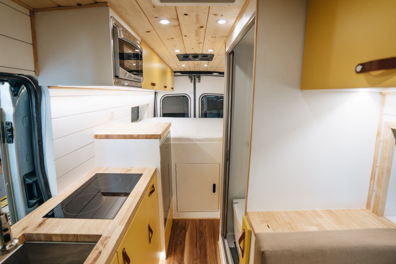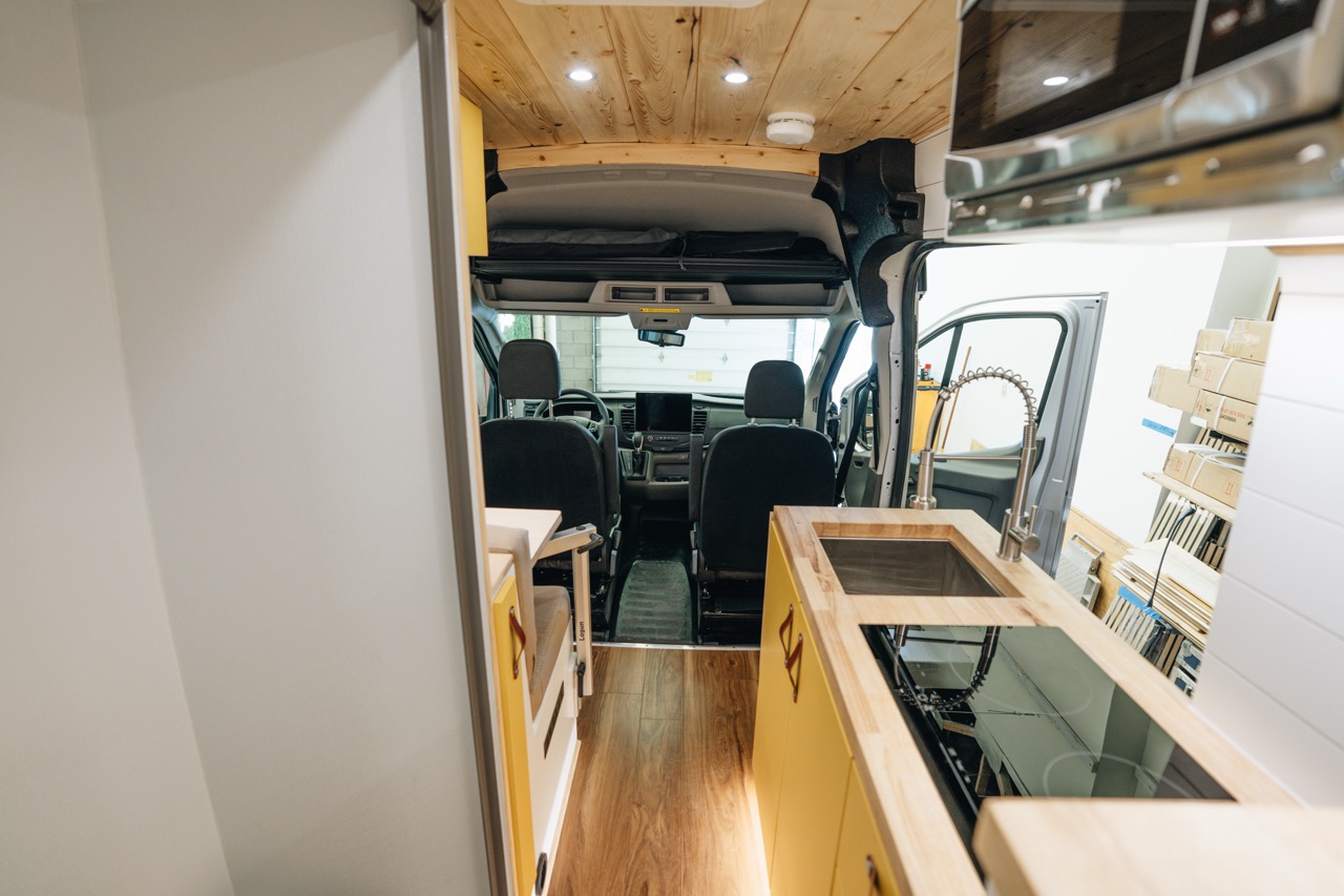 The Arnold Van is our fully equipped, all season, off grid Ford Transit build designed for long term travel and true independence. With 800Ah lithium power, solar charging, heated water systems, induction cooking, air conditioning, and upgraded suspension, this van is built to handle four season conditions while delivering the comfort of a small cabin. It balances refined finishes with durable components so you can travel farther and stay longer without compromise.