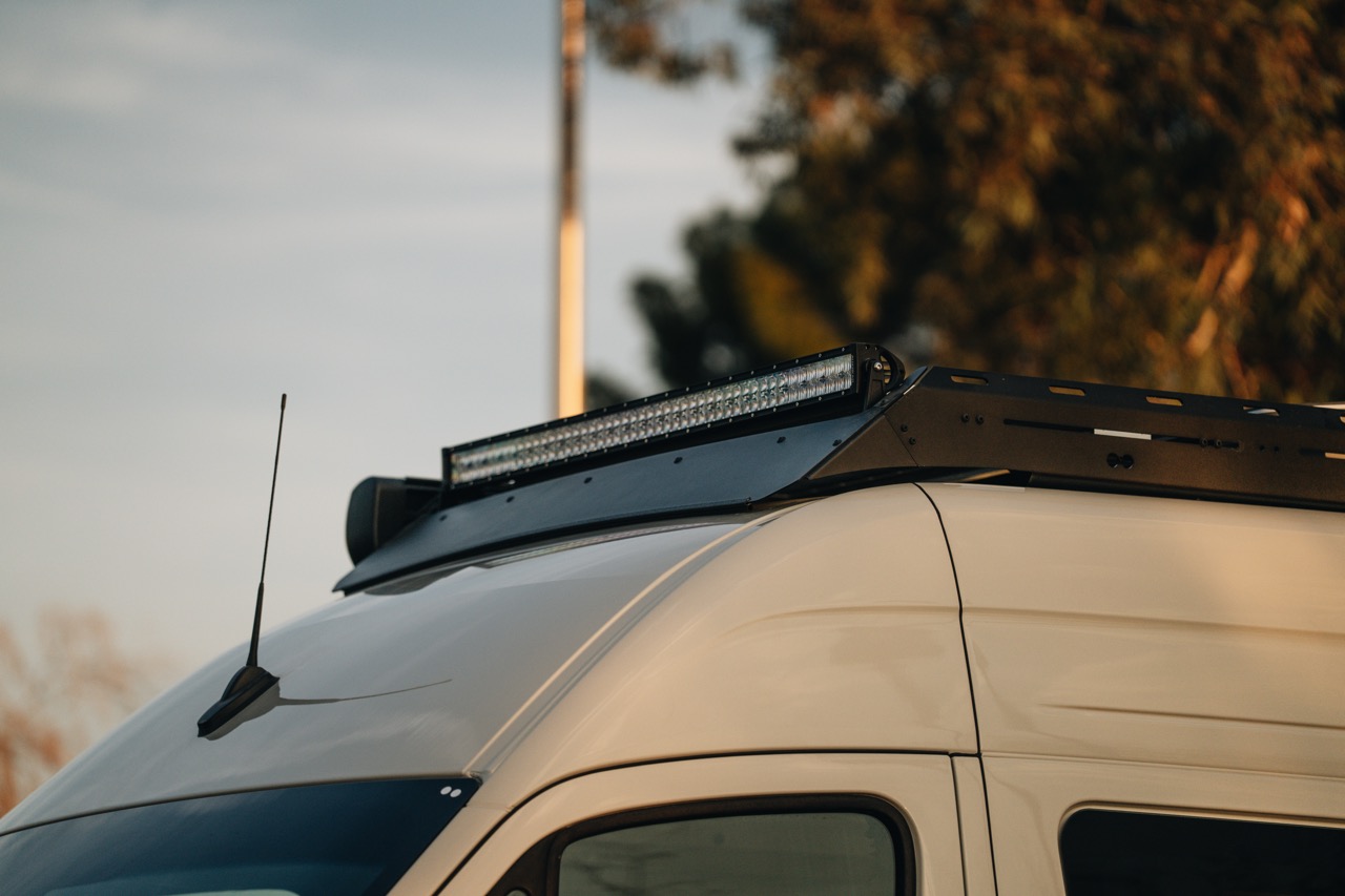 - FVCO roof rack with light-bar-ready fairing + ladder