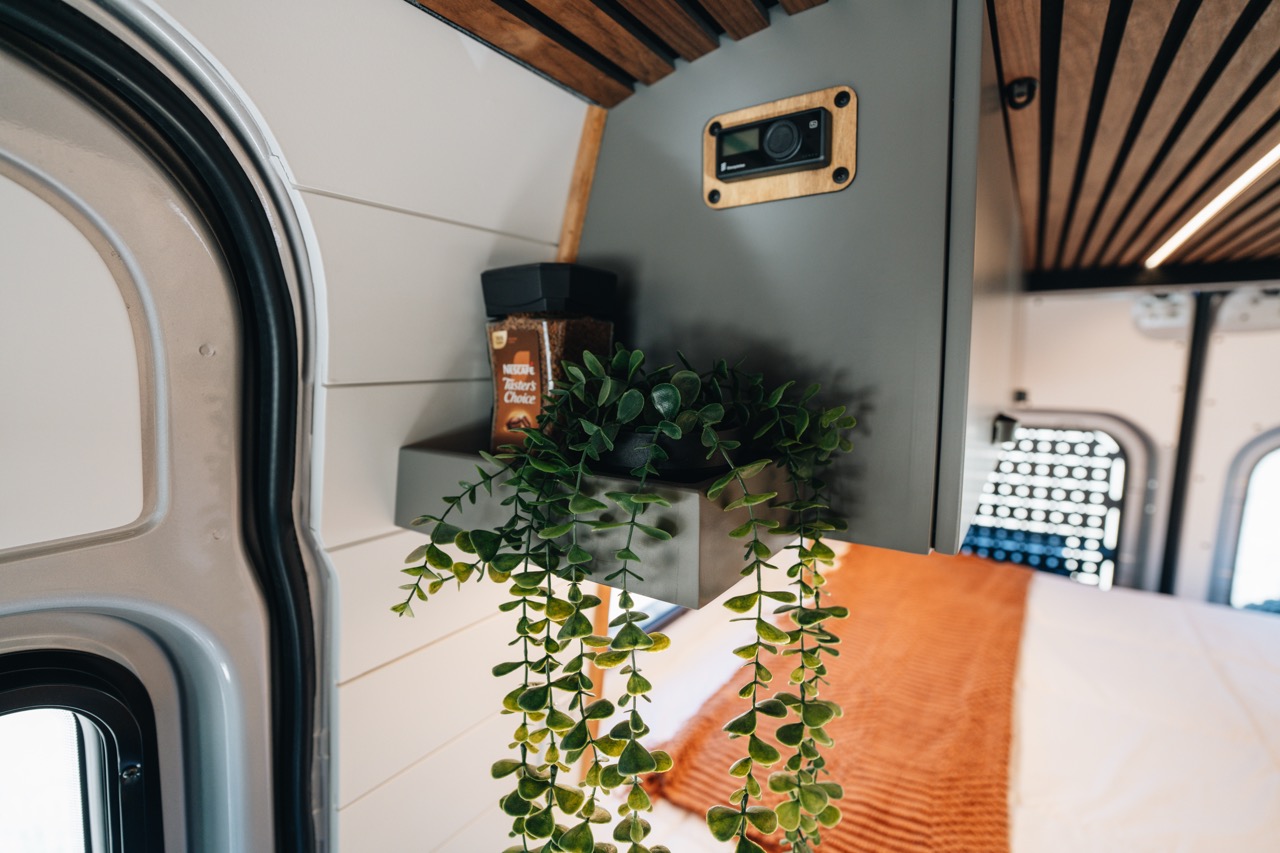 - Headliner shelf with curtain