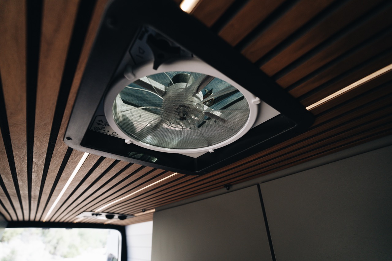 - MaxxAir Deluxe roof fan with remote